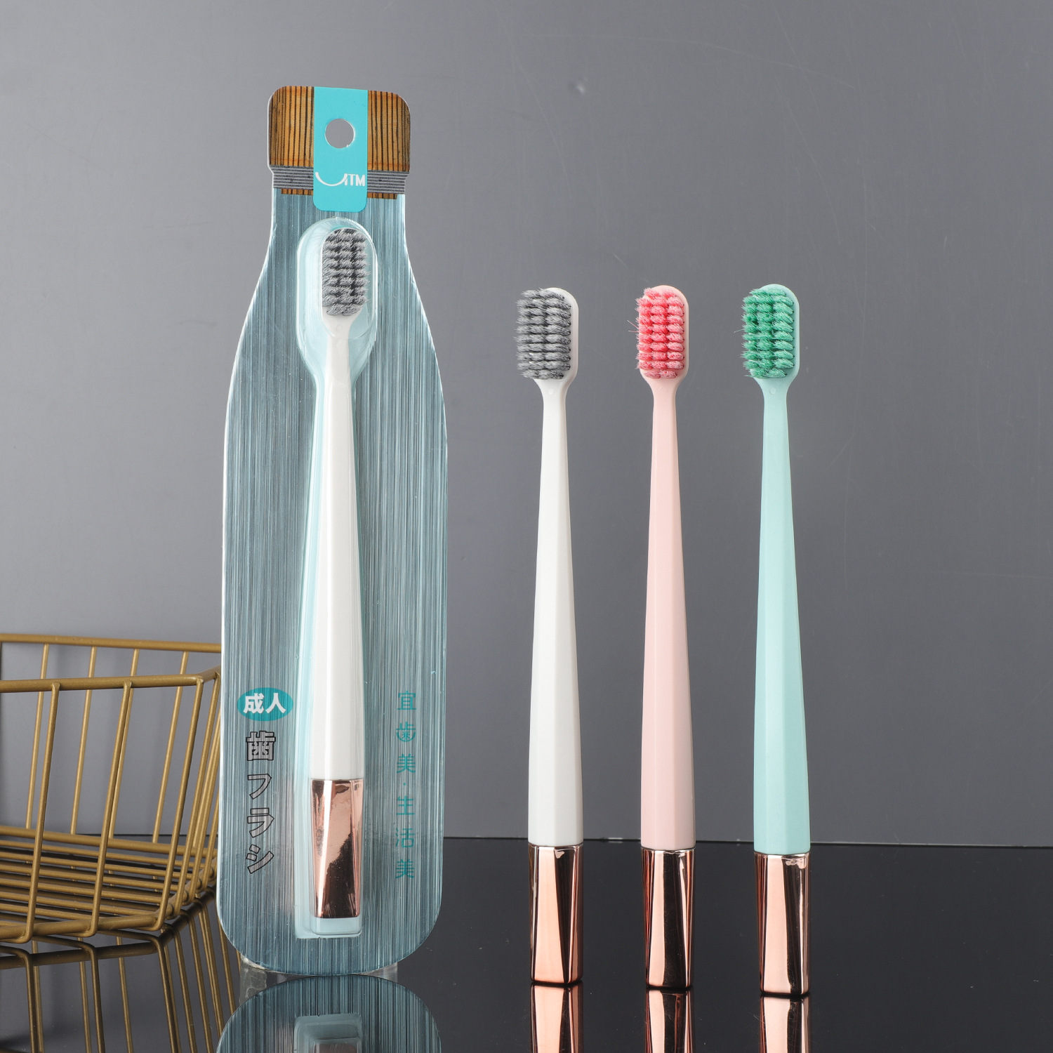 牙刷软毛护龈高档家用螺旋镀银宽头独立包装百货日用品