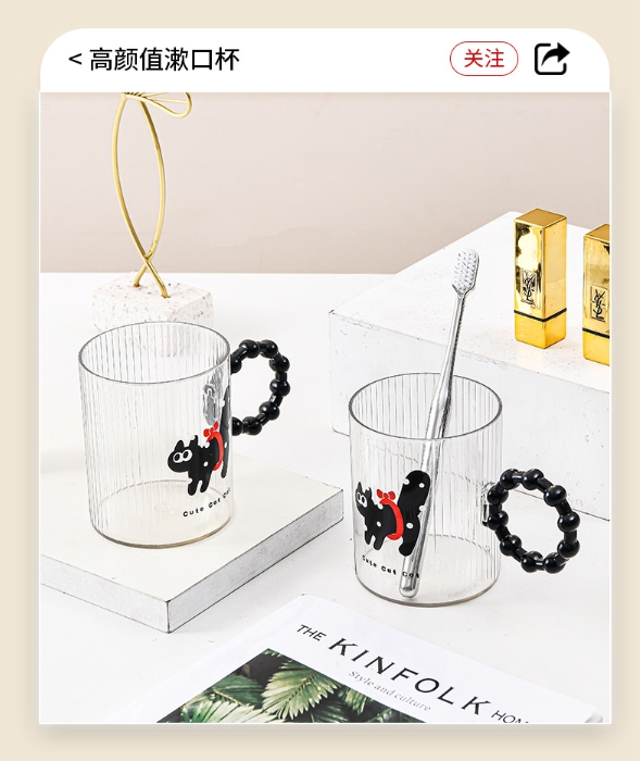 猫趣系列PET透明漱口杯洗漱杯刷牙杯学生牙刷杯子家用儿童刷牙杯